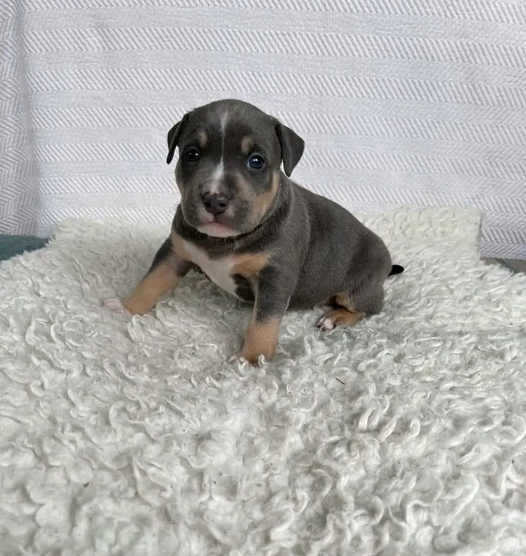 Hi, I’m Jasmine! I’m a 4-week-old Female American pitbull with a beautiful blue merle coat, born on March 15. I’ll be ready to go home to my forever family after April 25, once I’m grown enough to leave my litter. When I reach my adult size, I should weigh between 35–65 lbs. I’m APRI registered. I’m ready to turn your ordinary days into extraordinary ones.