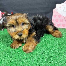 Hi, I’m Benjamin! I’m an 11-week-old male Yorkshire Terrier with a beautiful black & tan coat, born on November 5, which makes me a Scorpio pup. I am ready now to plan my trip to my forever family. Once I reach my adult size, I’m expected to weigh between 5-9 Ibs. I’m ACA registered. I’m ready to make every day a little brighter with my puppy love.