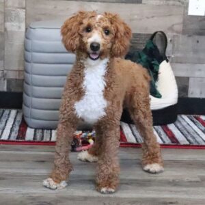 Goldendoodle. My dad is a Poodle and my mom is a Golden Doodle. I have a beautiful apricot coat. I’ll be ready to go home to my forever family after December 11, once l’m grown enough to leave my litter. I’m ICA registered. I can’t wait to bring my puppy joy and cuddles into your home.