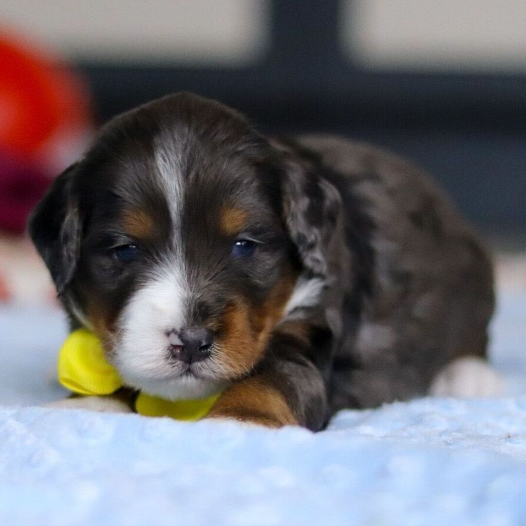Bernedoodle. My dad is a Poodle and my mom is a Bernedoodle. I have a beautiful blue merle, white & tan coat, and I was born on October 29, which makes me a Scorpio sign. I’ll be ready to go home to my forever family after December 24, once l’m grown enough to leave my litter. It seems to me you lived your life like a candle in the wind, and I’ll be the little light that never goes out.