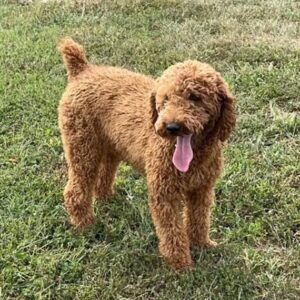 Goldendoodle. My dad is a Poodle and my mom is a Goldendoodle. I have a beautiful red coat, and I was born on October 15, which makes me a Libra sign. I’ll be ready to go home to my forever family after December 10, once I’m grown enough to leave my litter. I’m UABR registered. I’m ready to shower you with love and lots of wet-nosed kisses.