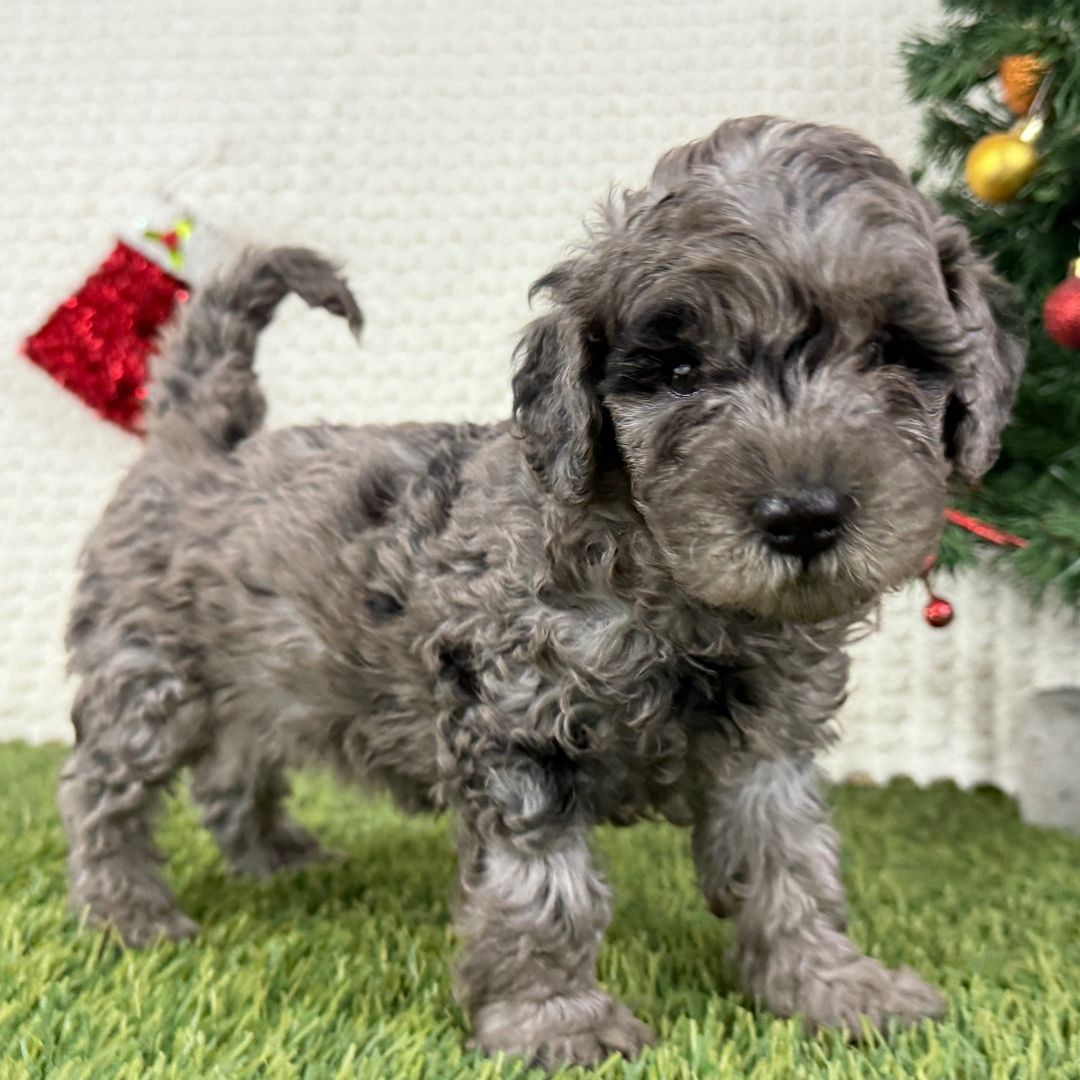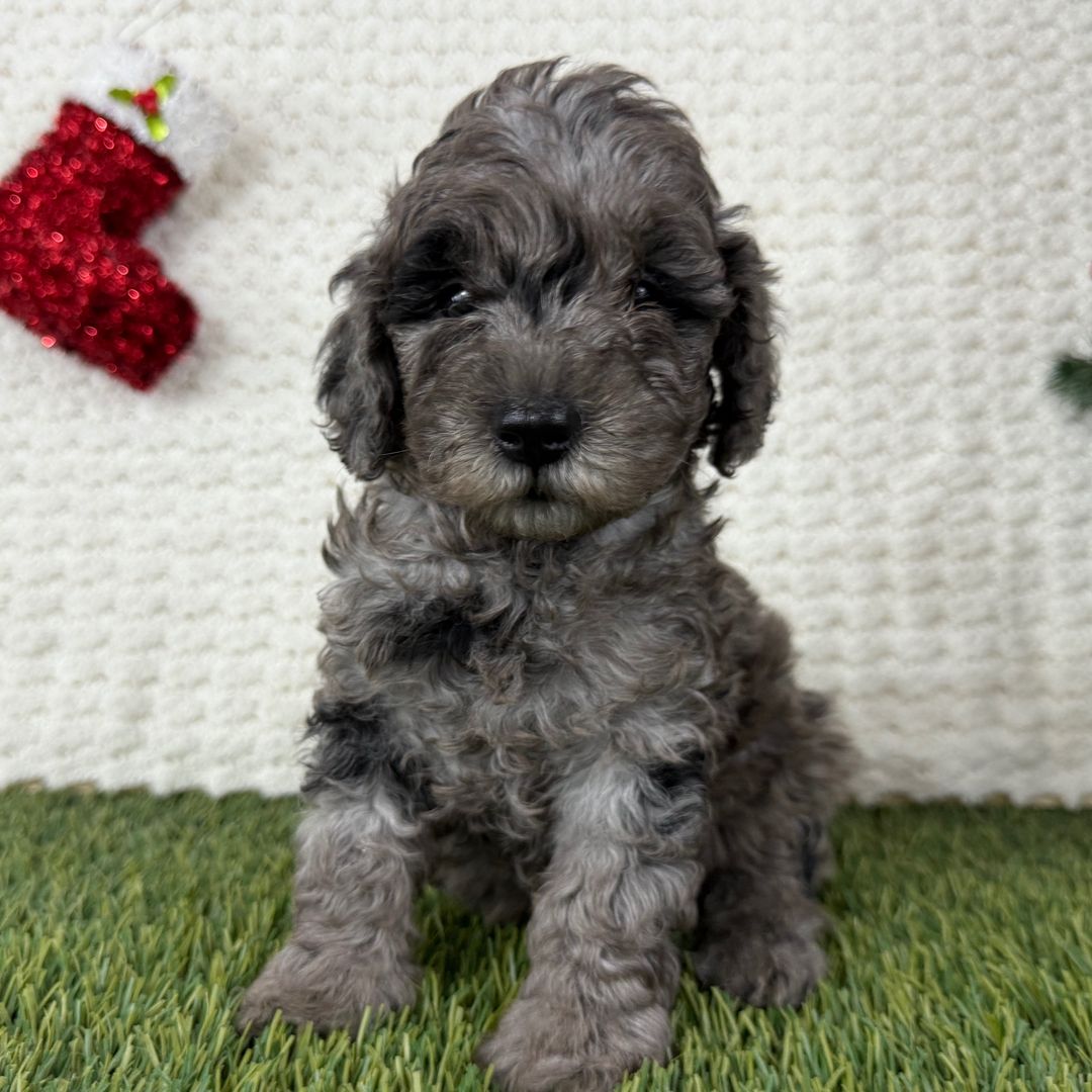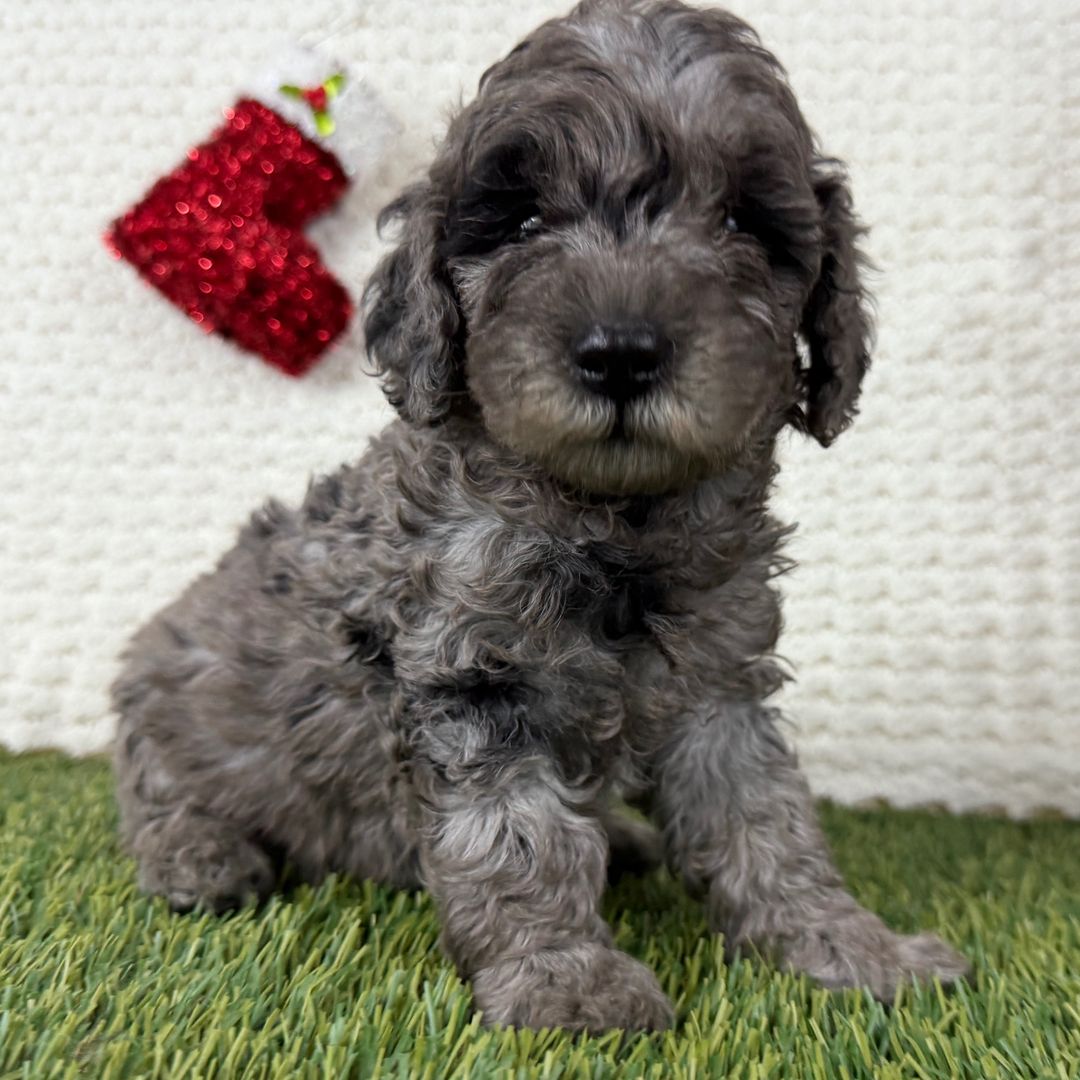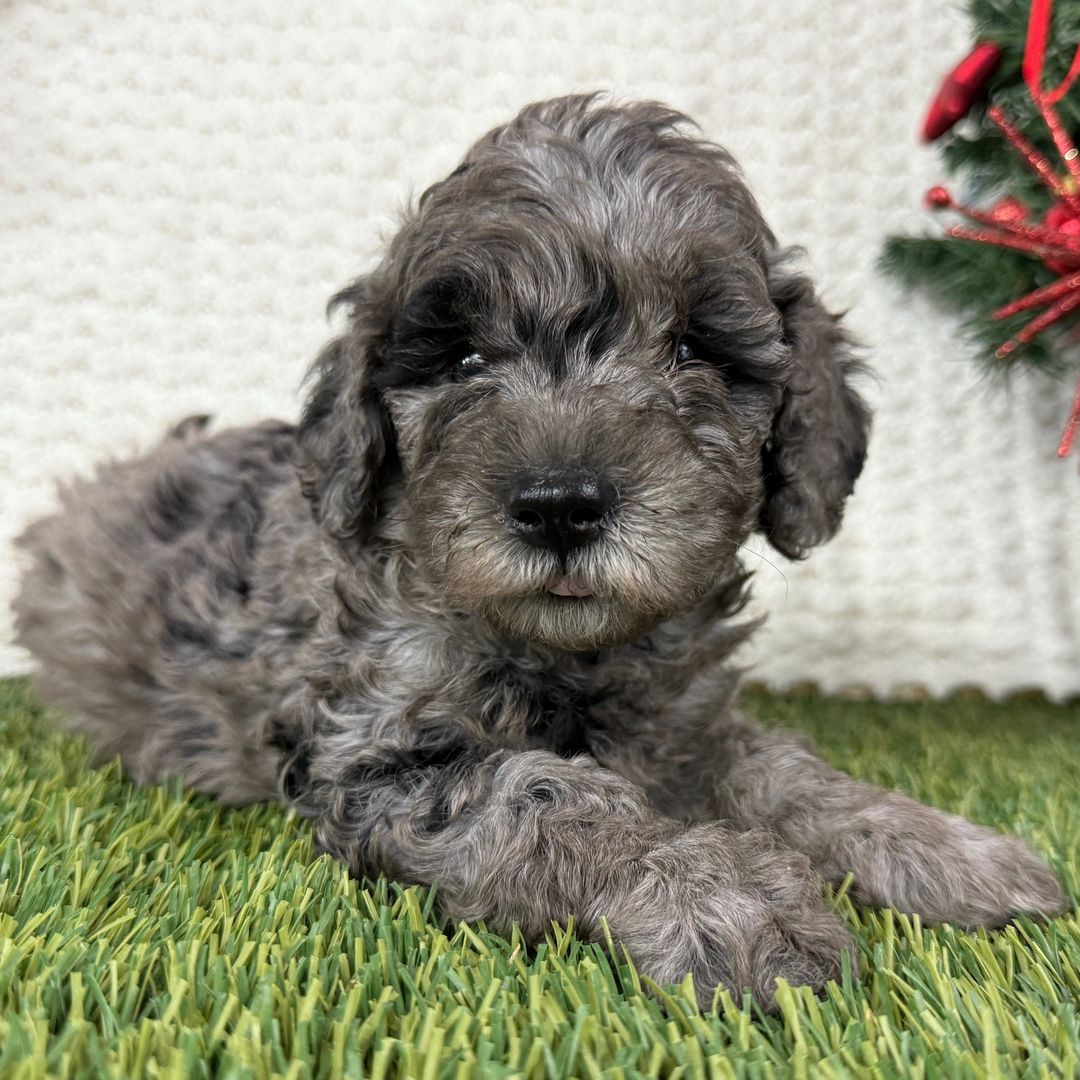 Hi, I’m Leo! I’m a 6-week-old male Goldendoodle. My dad is a Poodle and my mom is a Goldendoodle. I have a beautiful blue merle coat, and I was born on October 15, which makes me a Libra sign. I’ll be ready to go home to my forever family after December 10, once I’m grown enough to leave my litter. I’m ICA registered. My goal in life is to keep your lap warm and your heart full.