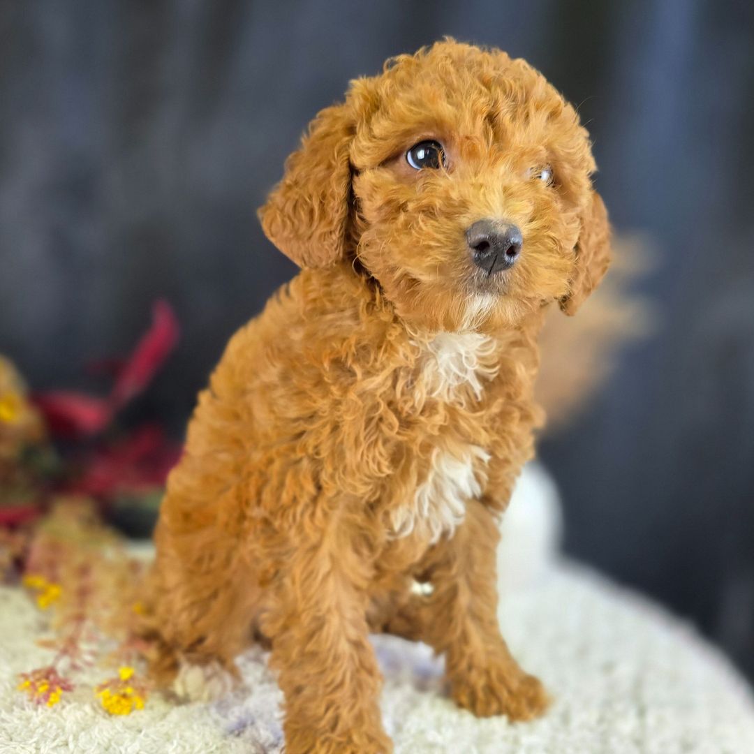 Hi, I’m Lola! I’m an 11-week-old female Poodle with a beautiful red coat, born on September 8, which makes me a Virgo pup. I am ready now to plan my trip to my forever family. I’m AKC registered. My tail wags for the thought of being part of a lovely family.