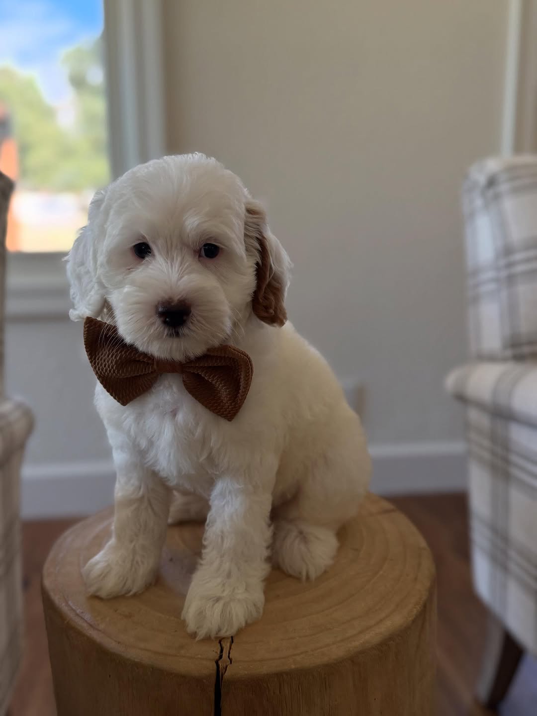 Goldendoodle. My dad is a Poodle and my mom is a Goldendoodle. I have a beautiful red coat, and I was born on October 15, which makes me a Libra sign. I’ll be ready to go home to my forever family after December 10, once I’m grown enough to leave my litter. I’m UABR registered. I’m excited to meet my forever family and share my love.