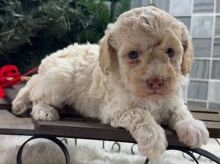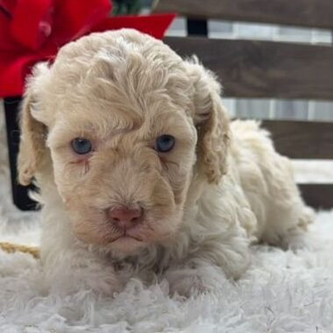 Hi, I’m Madeline! I’m a 6-week-old female Poodle with a beautiful cream coat, born on November 30, which makes me a Sagittarius sign. I’ll be ready to go home to my forever family after January 26, once I’m grown enough to leave my litter. I’m AKC registered. I’m looking forward to being your sunshine on a rainy day.