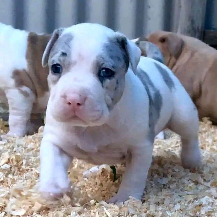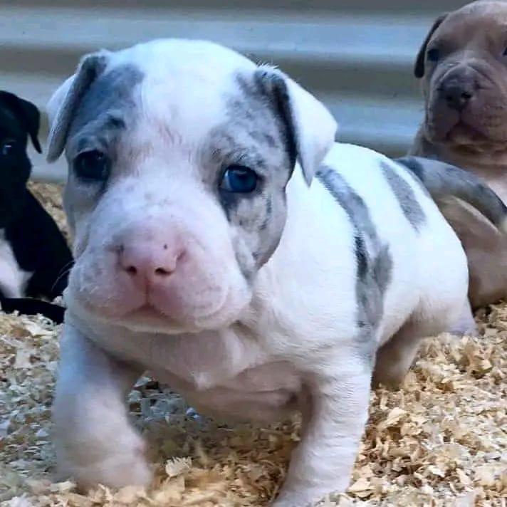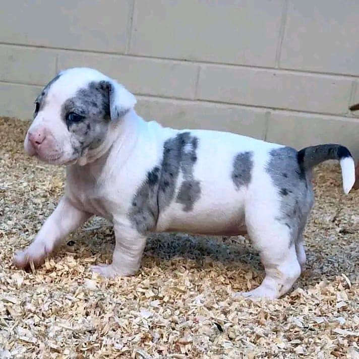 Hi, I’m marie! I’m a 4-week-old Female pitbull with a beautiful blue merle coat, born on March 15. I’ll be ready to go home to my forever family after April 25, once I’m grown enough to leave my litter. When I reach my adult size, I should weigh between 35–65 lbs. I’m APRI registered. I’m ready to turn your ordinary days into extraordinary ones.