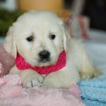 Hi, I’m Mercy! I’m a 6-week-old female Golden Retriever with a beautiful english cream coat, born on December 14, which makes me a Sagittarius sign. I’ll be ready to go home to my forever family after February 8, once I’m grown enough to leave my litter. When I reach my adult size, I should weigh between 45-75 Ibs. I’m AKC registered. My heart is as big as my paws are tiny, and I’m ready to love you.