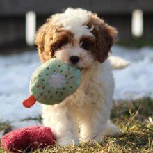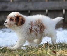 Hi, I’m Montgomery! I’m a 10-week-old male Cavapoo. My dad is a Poodle and my mom is a Cavalier King Charles Spaniel. I have a beautiful red & white coat, and I was born on November 5, which makes me a Scorpio pup. I am ready now to plan my trip to my forever family. Once I reach my adult size, I’m expected to weigh between 10-14 Ibs. I’m ICA registered. I love to play fetch; it’s my favorite game. When I get tired, I will come and curl up next to you so we can go to sleep.