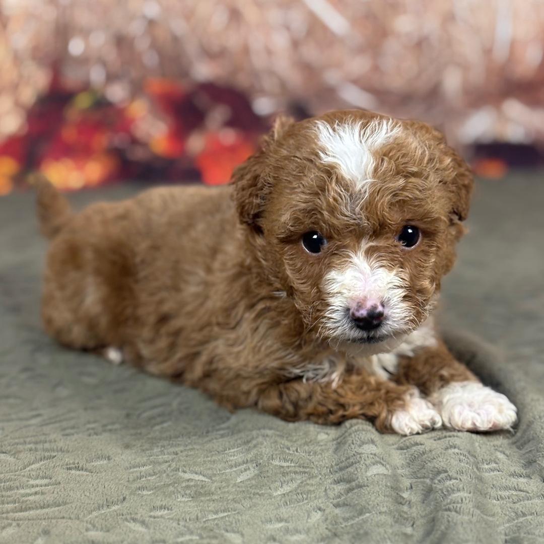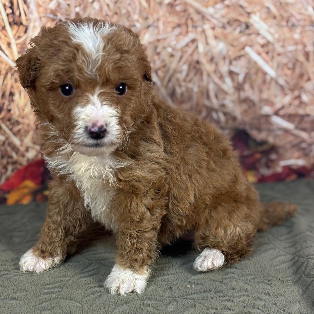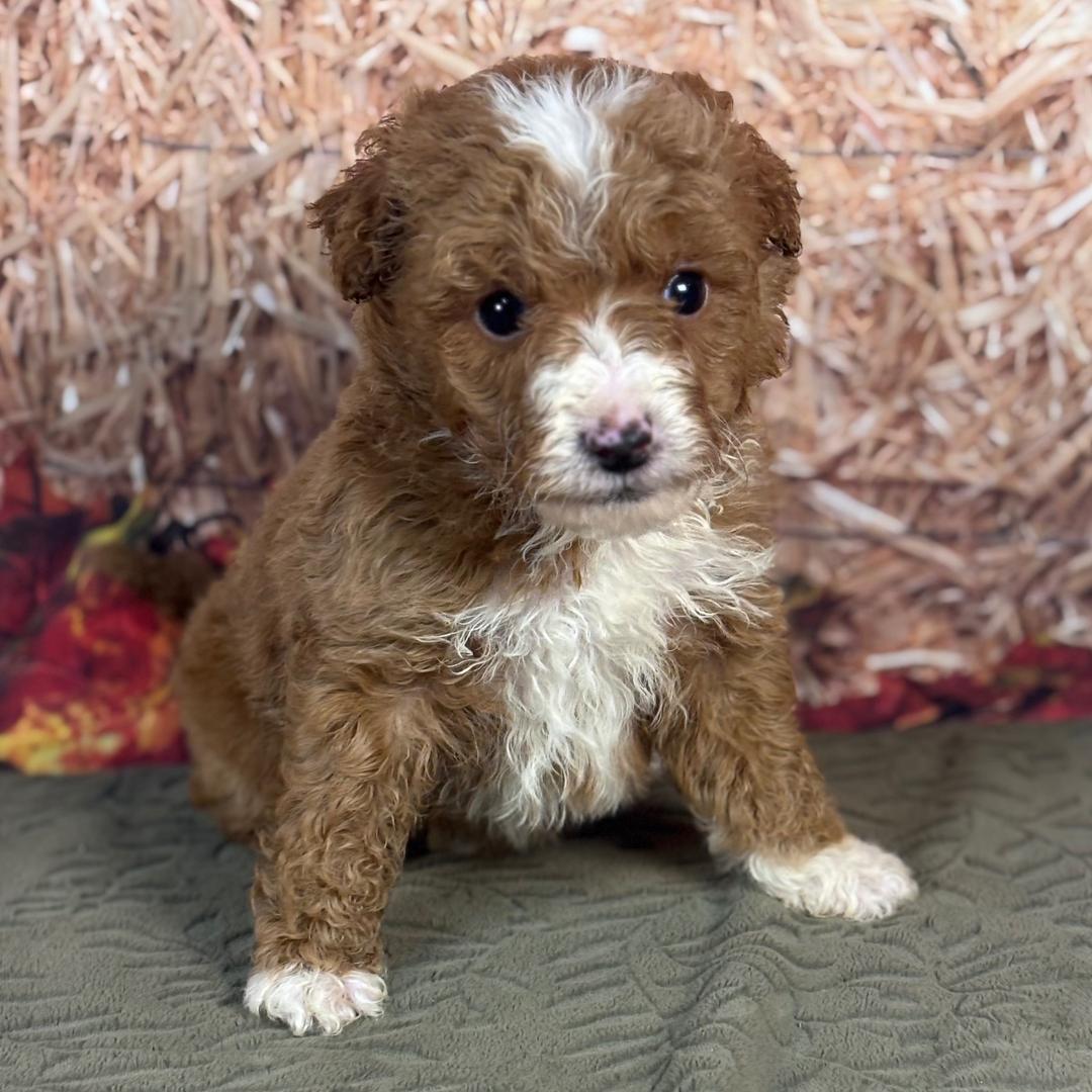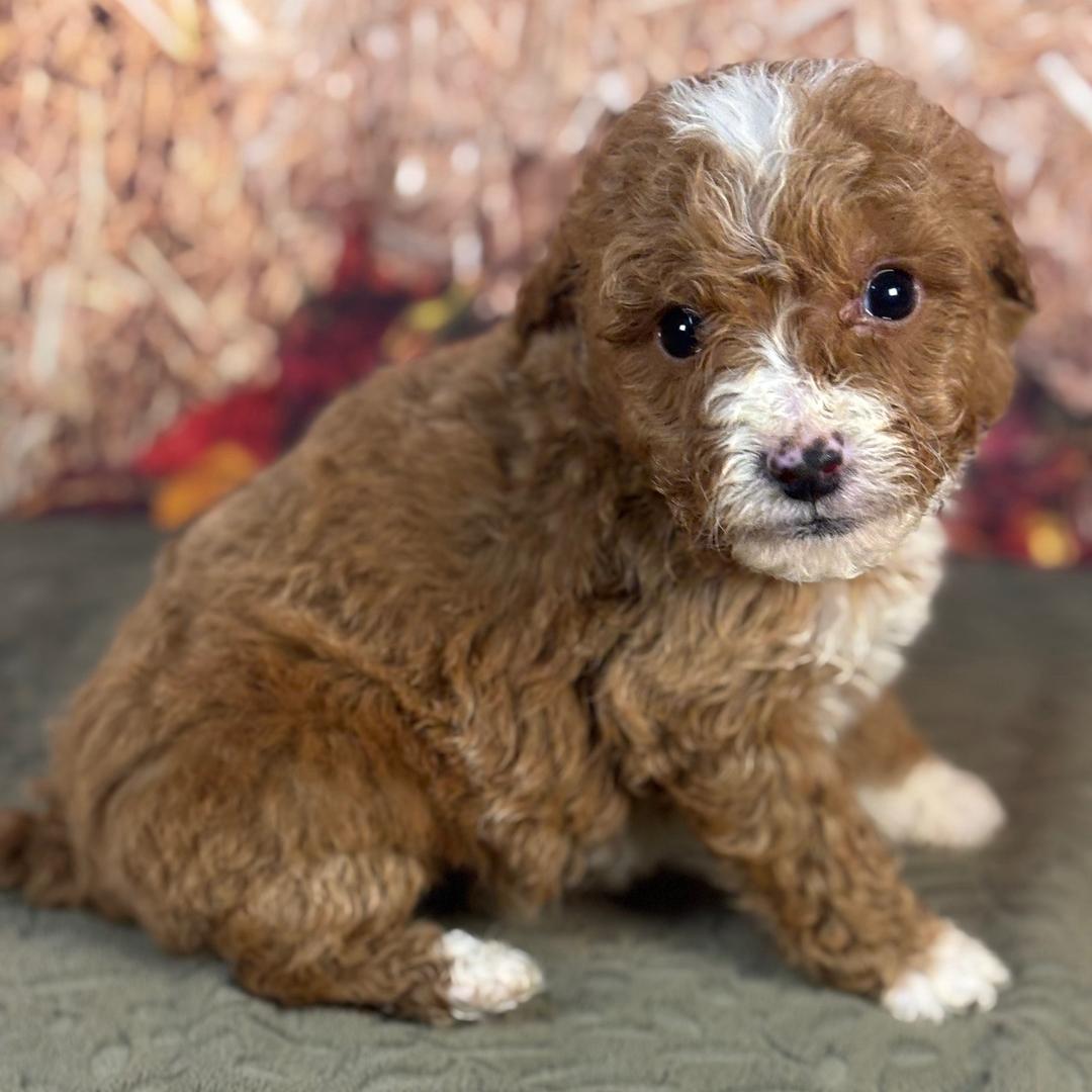 Hi, I’m Scooby! I’m a 6-week-old male Goldendoodle. My dad is a Poodle and my mom is a Goldendoodle. I have a beautiful red coat, and I was born on October 11, which makes me a Libra sign. I’ll be ready to go home to my forever family after December 6, once I’m grown enough to leave my litter. I’m ready to be your little ball of love and joy.