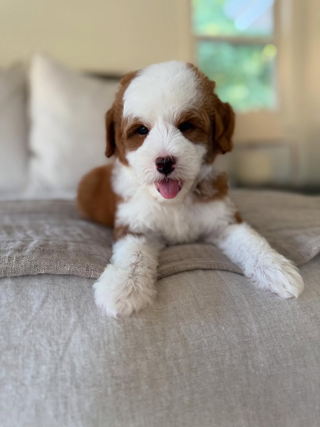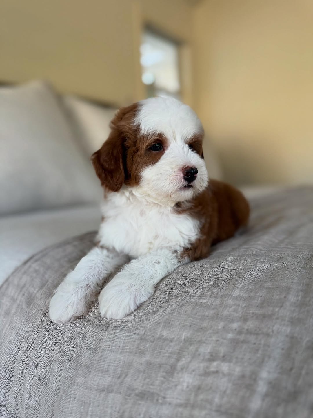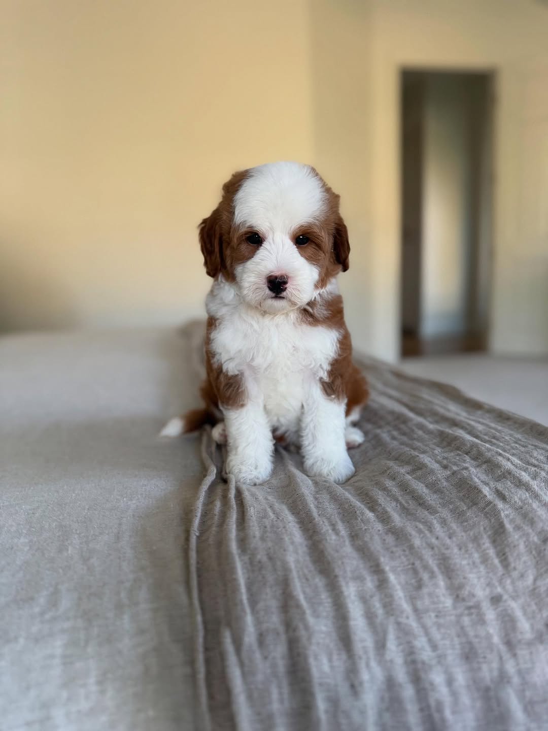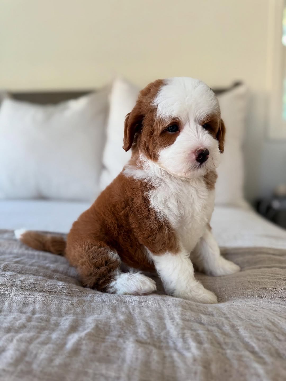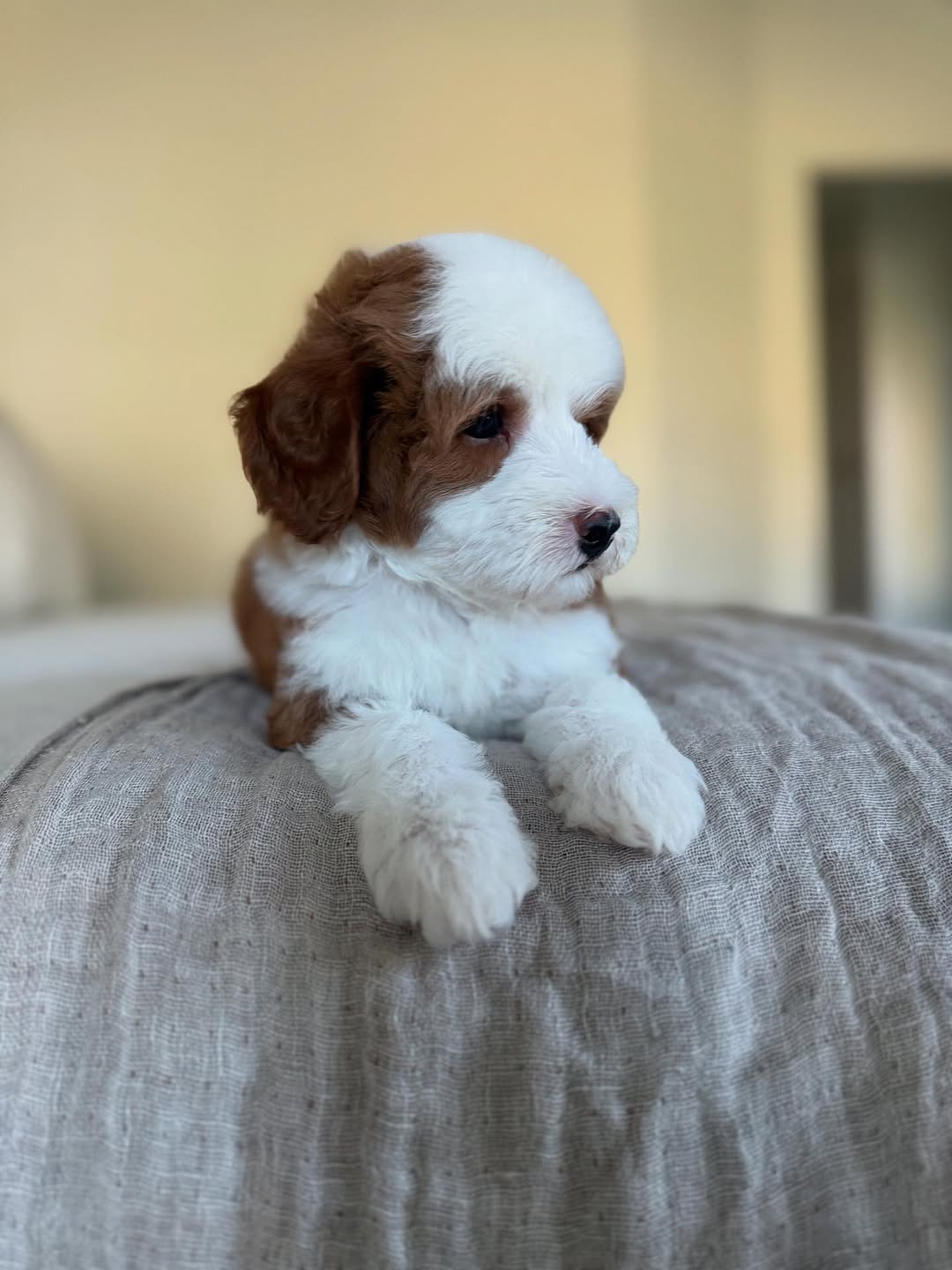 Hi, I’m Sugar! I’m a 8-week-old female Goldendoodle. My dad is a Poodle and my mom is a Golden Retriever. I have a beautiful apricot coat, and I was born on September 19, which makes me a Virgo pup. I am ready now to plan my trip to my forever family. I’m a gentle soul who will be your calm in any storm.