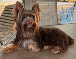Hi, I’m Wilbur! I’m a 13-week-old male Yorkshire Terrier with a beautiful chocolate, tan & white coat, born on October 25, which makes me a Scorpio pup. I am ready now to plan my trip to my forever family. Once I reach my adult size, I’m expected to weigh between 5-7 Ibs. I’m AKC registered. I’m a little ball of fluff with a big personality.